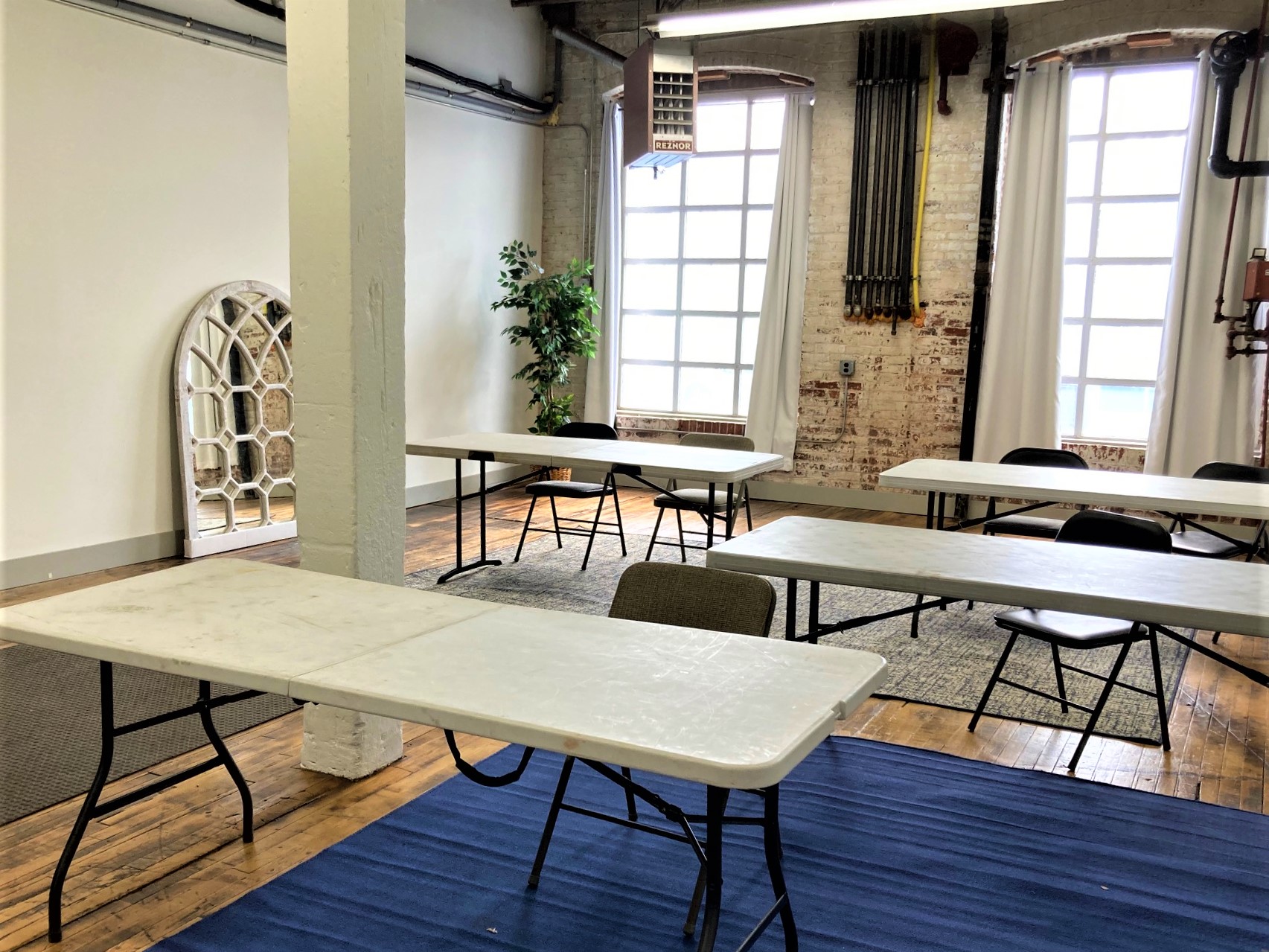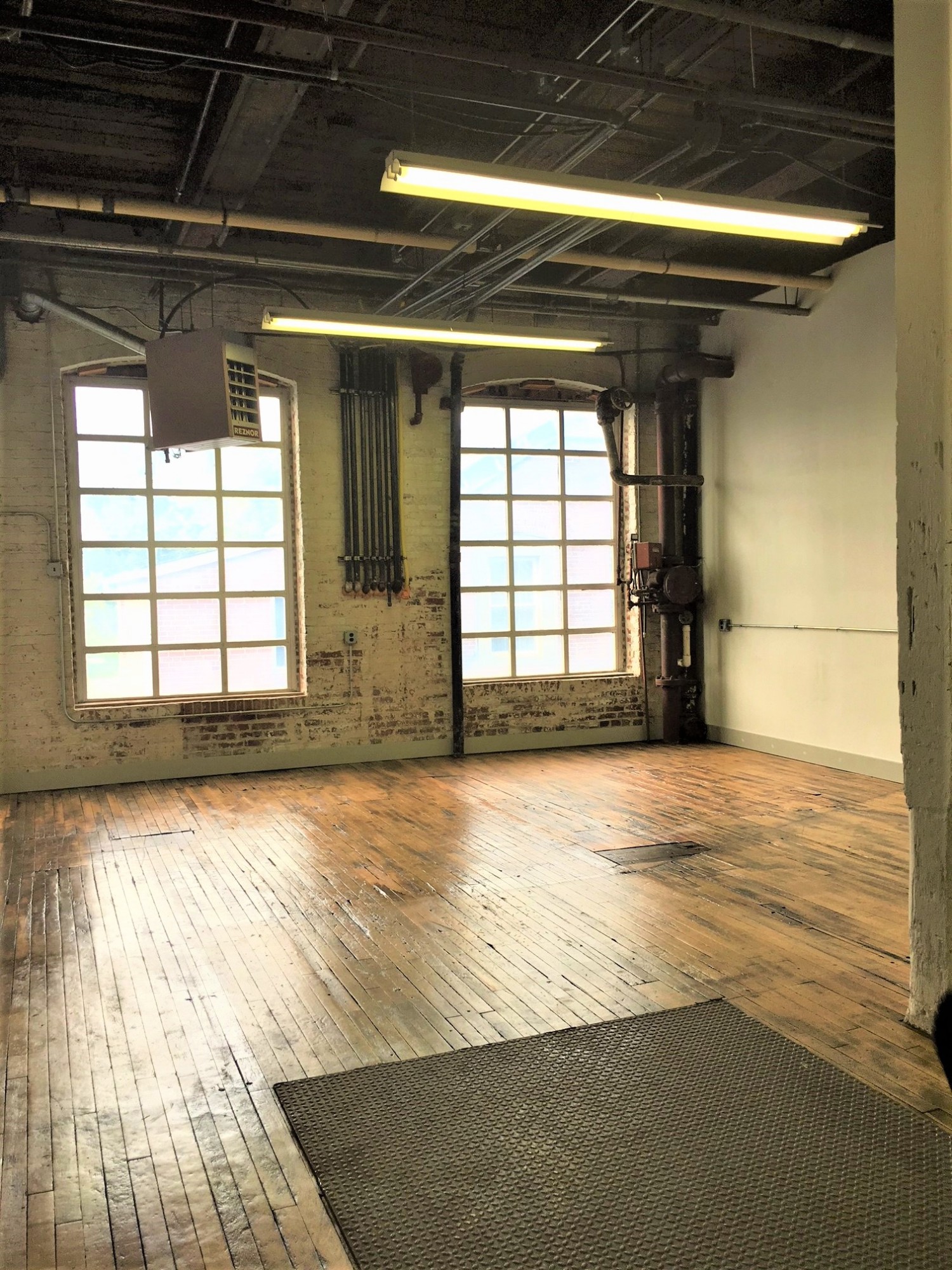 Upper and lower dock access, split unit HVAC, sink and drain, beautiful large windows, and original hardwood floor!